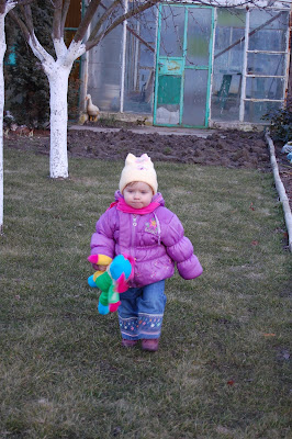 Wczoraj zabraliśmy Natalkę na działkę - oczywiście musiała wejść w każdy kąt. Cieszę się, bo bardzo jej się podobało.